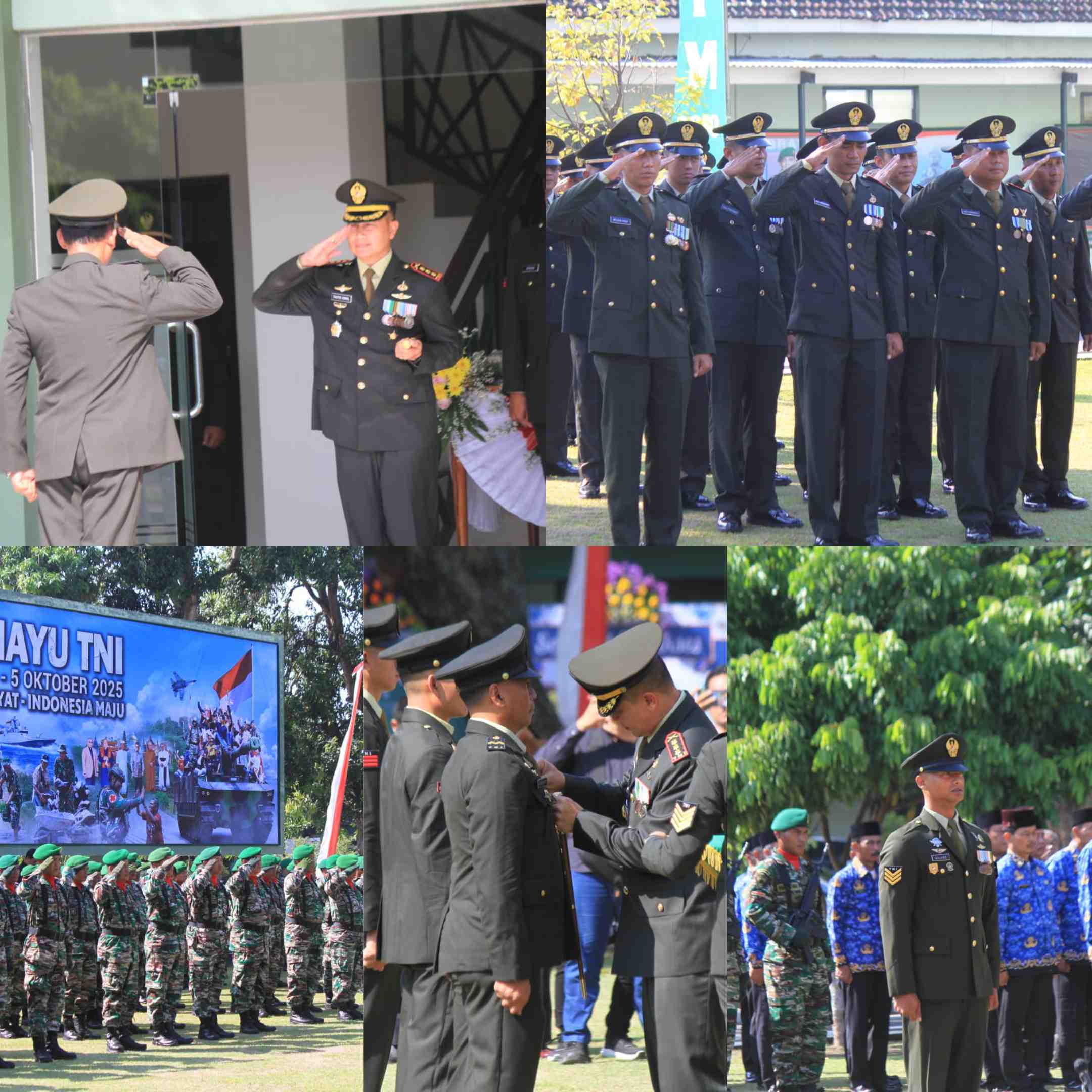 Kodim 0809/Kediri bersama Jajaran TNI di wilayah Kediri menggelar Upacara peringatan Hari Ulang Tahun (HUT) Ke – 80 Tentara Nasional Indonesia tahun 2025 yang digelar di Lapangan Upacara Markas Kodim 0809/Kediri Jl. A. Yani No. 16 Kel. Banjaran Kec/Kota Kediri. Minggu, (5/10/202).