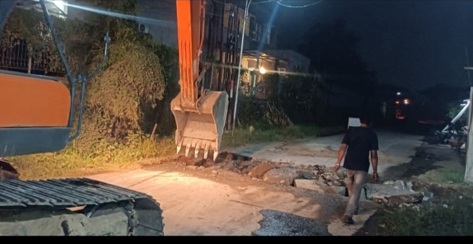 Kegiatan perbaikan tersebut dimulai Sabtu malam (11/10/2025) pukul 22.00 WIB dan ditargetkan selesai pada Minggu pagi (12/10/2025). Perbaikan meliputi peninggian jalan serta pemasangan saluran air untuk meningkatkan sistem drainase di kawasan tersebut.