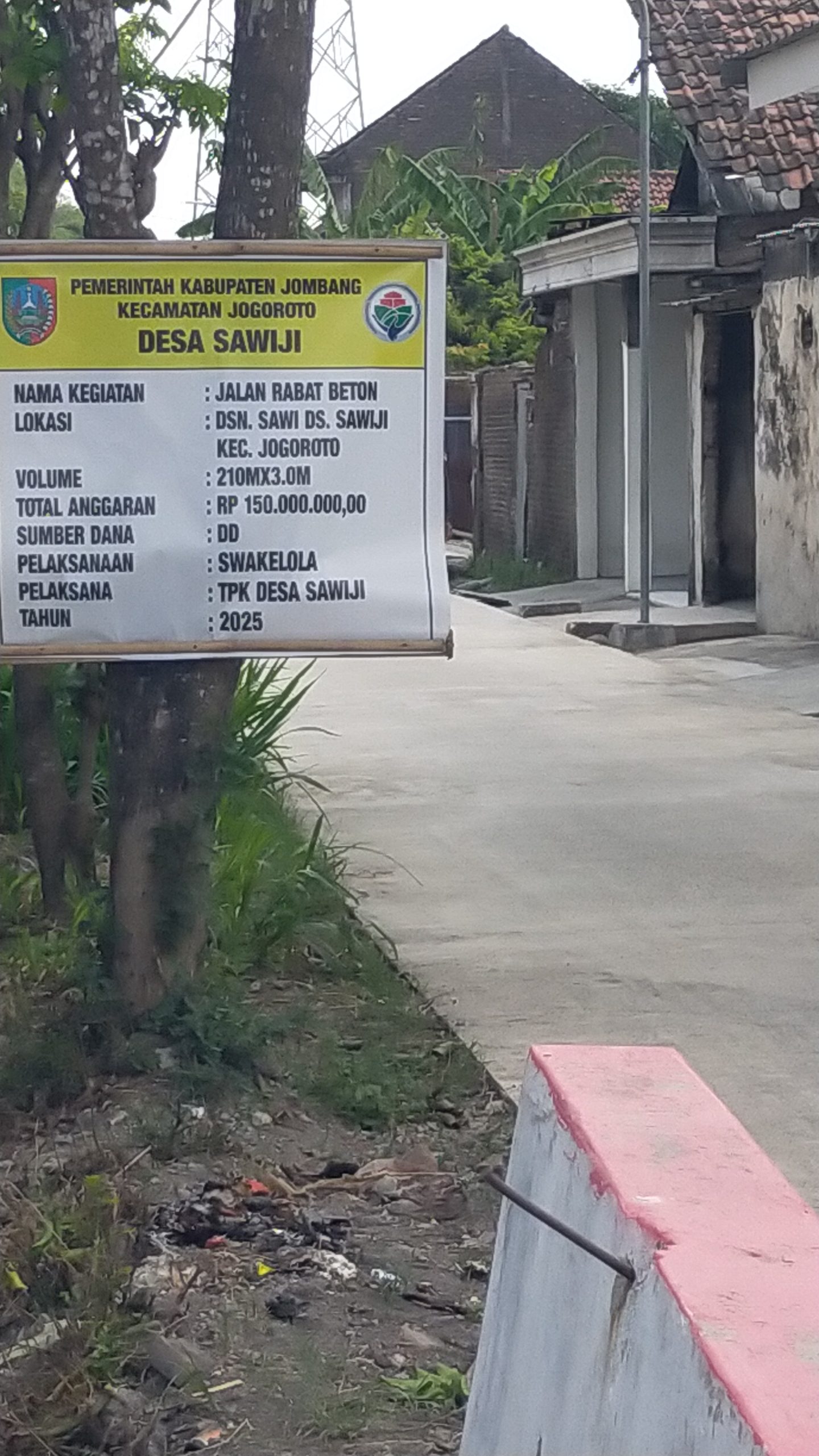 Proyek pembangunan rabat beton di Desa Sawiji, Kecamatan Jogoroto, Kabupaten Jombang, senilai Rp150 juta yang bersumber dari Dana Desa tahun 2025, kini menuai sorotan tajam dari warga.
