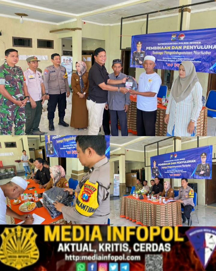 Dalam upaya mencegah penyalahgunaan narkoba di kalangan masyarakat, Polres Jember melalui Satresnarkoba menggelar kegiatan Sosialisasi dan Penyuluhan Bahaya Narkoba di Balai Desa Subo, Kecamatan Pakusari, Kabupaten Jember, yang diikuti oleh sekitar 45 warga setempat.