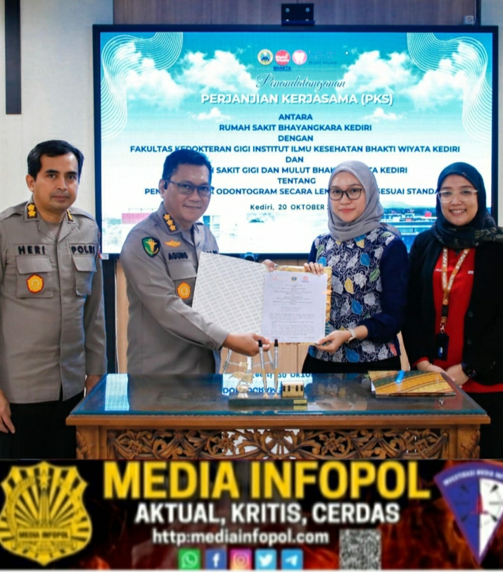 Kota,Tidak hanya mengoptimalkan pelayanan kepada para pasien, RS Bhayangkara Kediri juga jadi pelopor pengisian odontogram atau gambaran gigi dan jaringan mulut dalam bentuk diagram. Senin (20/10/2025) pihaknya melakukan penandatanganan kerja sama dengan Fakultas Kedokteran Gigi (FKG) serta Rumah Sakit Gigi dan Mulut Institut Ilmu Kesehatan Bhakti Wiyata (IIK Bhakta).
