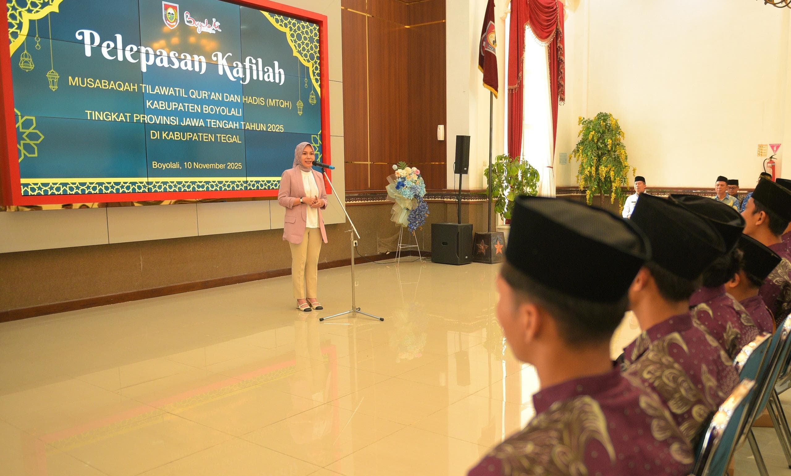 Acara pelepasan Kafilah oleh Wakil Bupati (Wabup) Boyolali Dwi Fajar Nirwana tersebut dilaksanakan pada hari ini, Senin (10/11/2025) di Ruang Merbabu Kantor Bupati Boyolali.