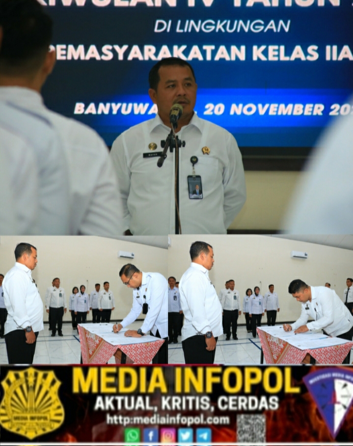 Guna memperkuat akuntabilitas dan kinerja institusi, jajaran Lembaga Pemasyarakatan (Lapas) Kelas IIA Banyuwangi melaksanakan penandatanganan Perjanjian Kinerja untuk tahun berjalan. Kegiatan yang berlangsung khidmat ini digelar di Aula Sahardjo Lapas setempat, Kamis (20/11).