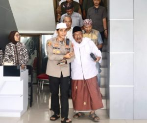 Moment Kapolresta Kombes Pol Rofiq Ripto Himawan menuntun KH. Ikrom Hasan menuruni tangga