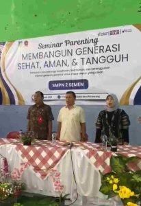 Kepala sekolah SMPN 2 Semen, Wawan Irawan, S.Pd., dalam sambutannya menyampaikan bahwa kegiatan parenting bukan sekadar agenda formal, melainkan momentum penting untuk menyatukan visi antara sekolah dan orang tua dalam mendampingi perkembangan anak.