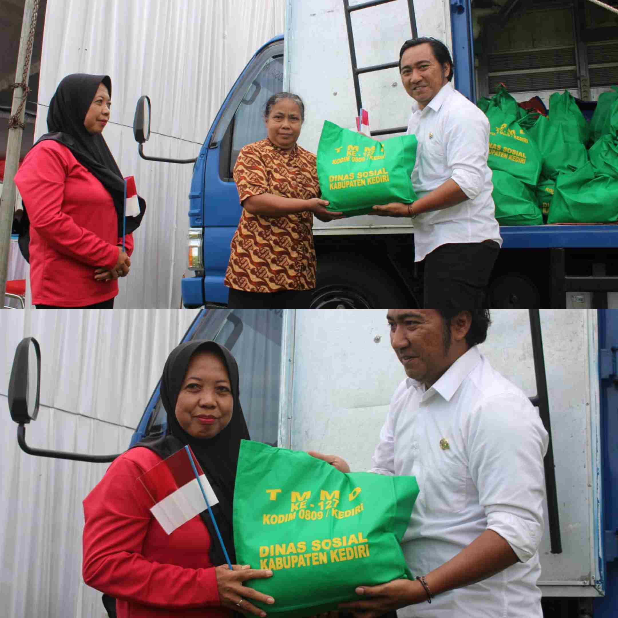Penyaluran bantuan dipusatkan di Lapangan Dusun Sumberbahagia dan menjadi bagian dari kolaborasi Pemerintah Kabupaten Kediri bersama TNI AD melalui Kodim 0809/Kediri.