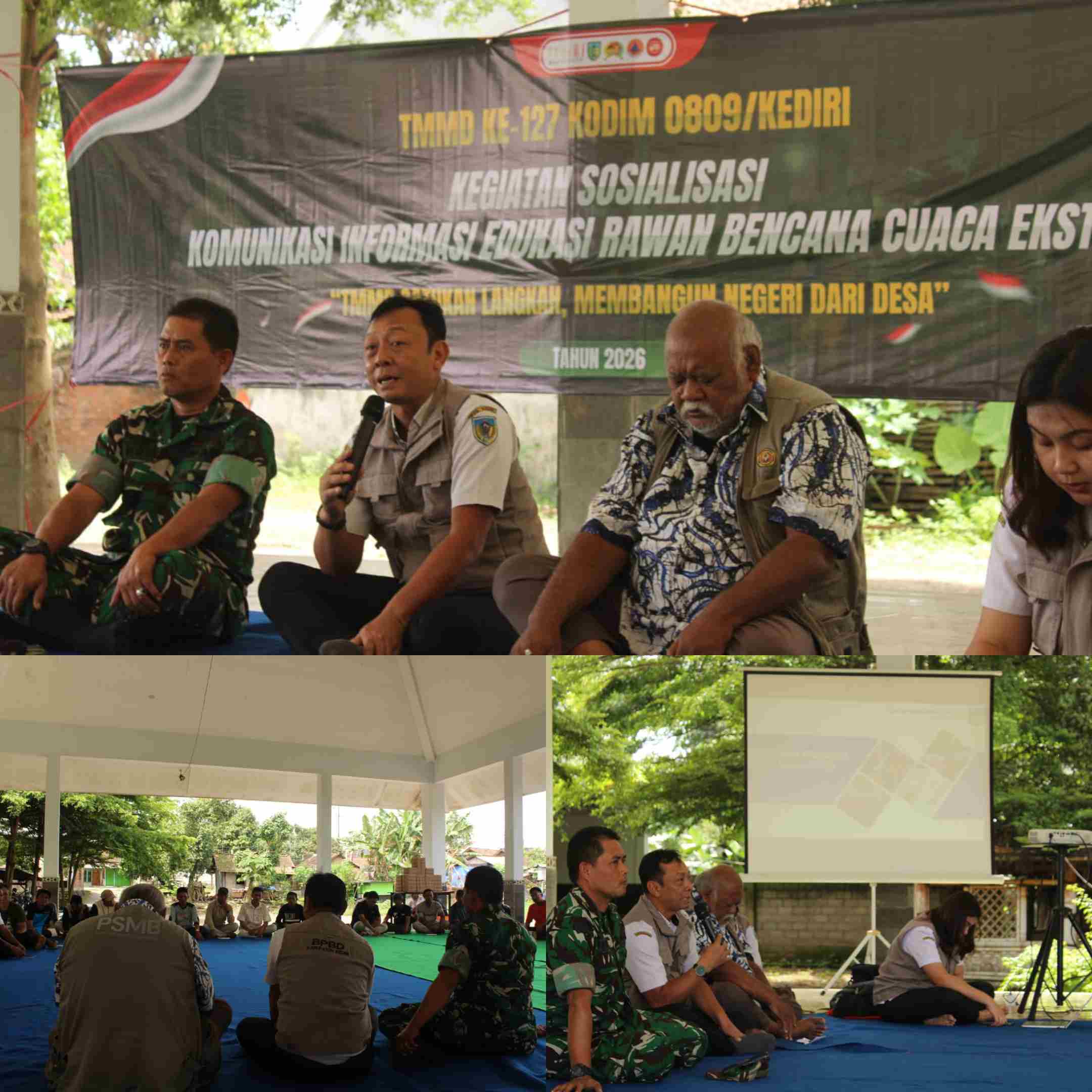 Di lokasi kegiatan, Perwira Lapangan dari Bati Tuud Koramil 0809/21 Puncu, Peltu Iswoyo, menyampaikan bahwa keterlibatan unsur TNI dalam sosialisasi tersebut merupakan bentuk dukungan terhadap upaya pencegahan dan pengurangan risiko bencana di wilayah sasaran TMMD.