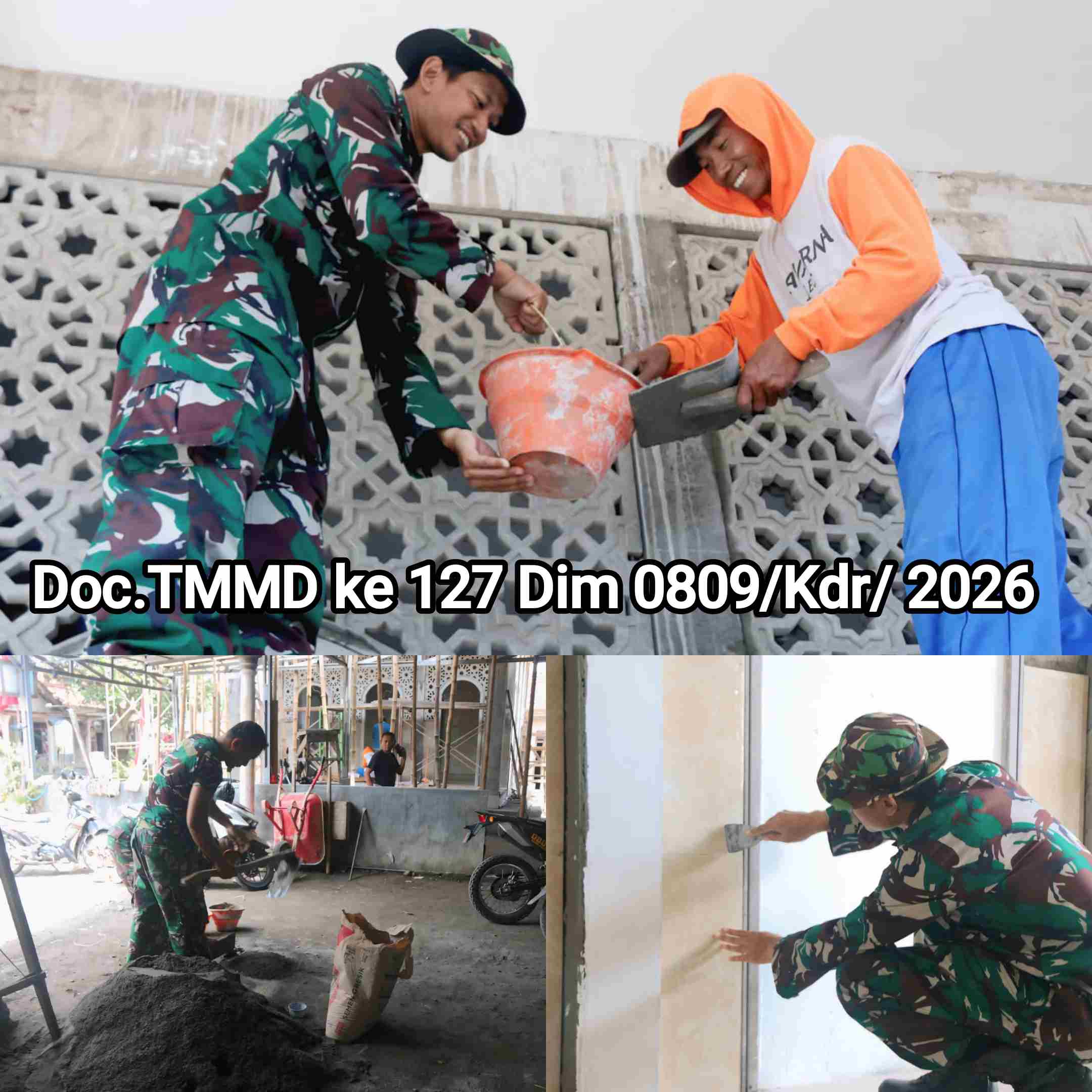 Satgas TNI Manunggal Membangun Desa (TMMD) ke-127 dari unsur Marinir turut membantu pembangunan tempat ibadah melalui rehabilitasi Musholla Al Ikhlas di Desa Gadungan, Kecamatan Puncu, Kabupaten Kediri, Minggu (8/3/2026).